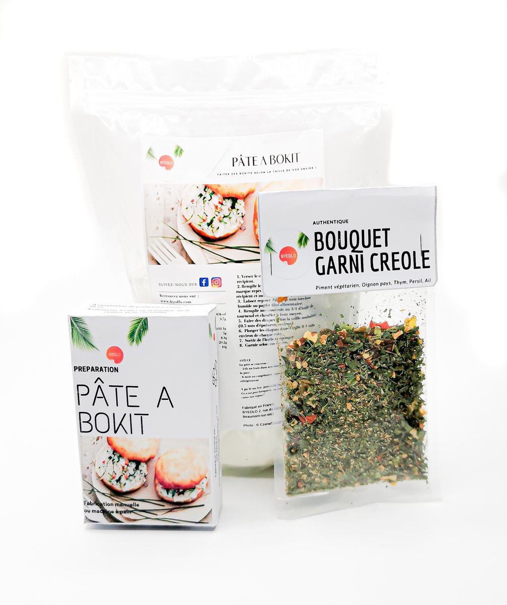 C'est un pain plat frit dans l'huile dans lequel on ajoute ce que l'on veut , du poulet grillé émietté bien assaisonné , du lambi , des tomates , de la salade , du piment. Bokit was inspired by the "johnny cake" which is a kind of fried bread that the New England colonies may have borrowed from the Indians. A tous les coups vos soirées seront réussies.